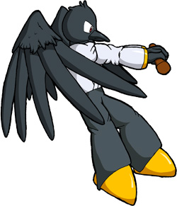 Karasū is the odd man out in the Fatal Five, the magic-using raven Robot Master counterpart to the entirety of the Genesis Unit (Buster Rod G, Mega Water S, and Hyper Storm H).